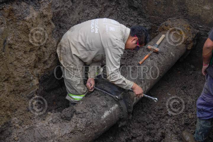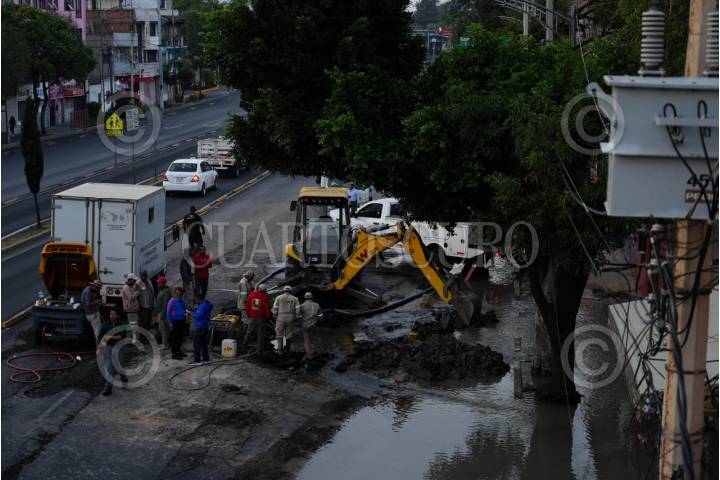 CIUDAD DE MÉXICO, 11MAYO2025.- La Secretaría de Gestión Integral del Agua (SEGIAGUA) desplegó un amplio operativo para la reparación de una fuga de agua localizada en la lateral de Eduardo Molina entre calles Choferes y Electricistas, colonia 20 de Noviembre de la Alcaldía Venustiano Carranza. El equipo técnico especializado de esta Dependencia trabaja en la reparación de la fuga en una línea de conducción de 12 pulgadas de diámetro. Para permitir el correcto desarrollo de las labores se procedió con el cierre de válvulas en la red hidráulica y se suspendió temporalmente la operación en el Rebombeo Balboas, que suministra agua en la zona. FOTO: GOBIERNO DE LA CIUDAD DE MÉXICO/CUARTOSCURO.COM