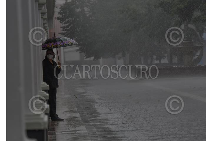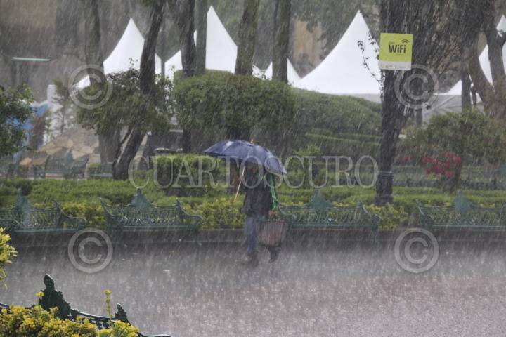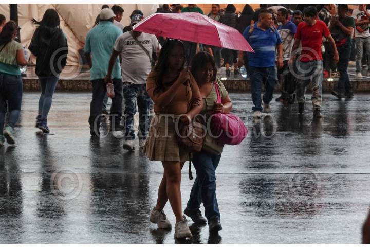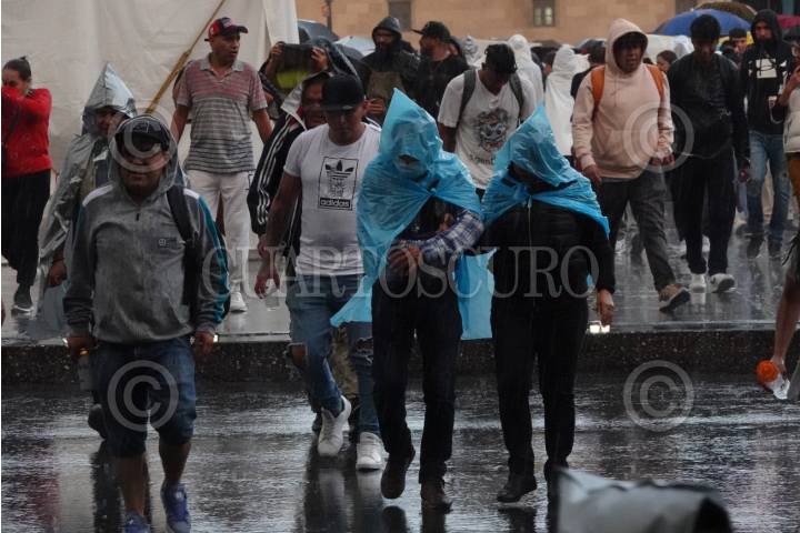 Capitalinos se cubrieron de las lluvias en el Zócalo capitalino