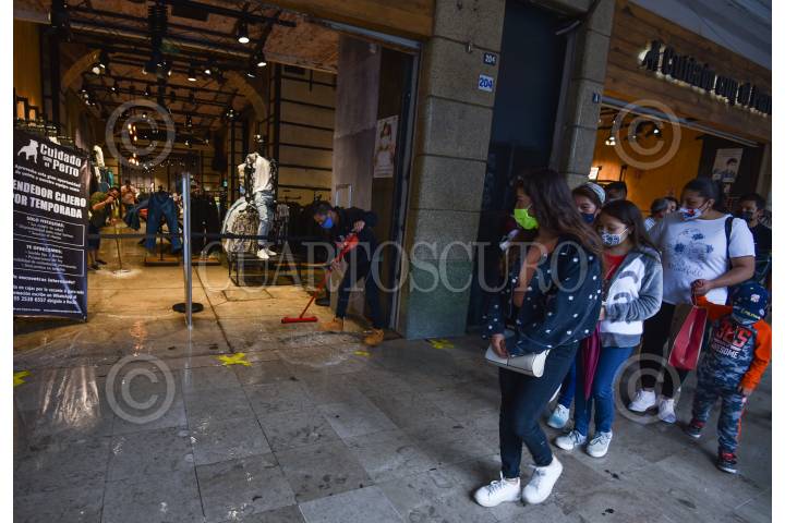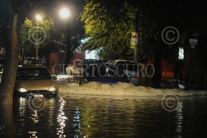 Empleados de una tienda de ropa en los Portales de Toluca tuvieron que sacar el agua que entró a la tienda del drenaje después de la fuerte lluvia que sorprendió a los habitantes de la capital mexiquense la tarde de este martes.
