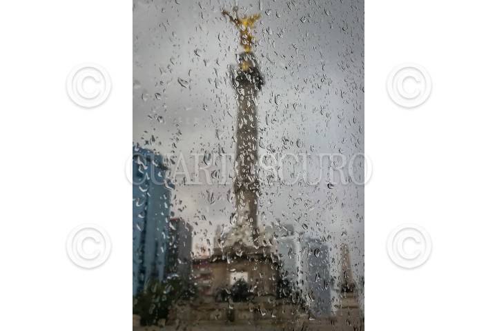 CIUDAD DE MÉXICO, 30SEPTIEMBRE2017.- Gotas de lluvia en el cristal de un camión luego de un chubasco que cayó durante la tarde del sábado, al fondo se observa la columna del Ángel de la Independencia. FOTO: DIEGO SIMÓN SÁNCHEZ /CUARTOSCURO.COM
