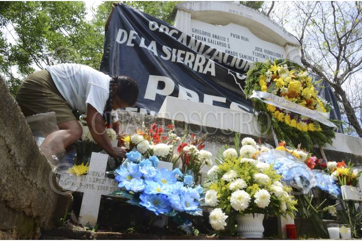 COYUCA DE BENÍTEZ, GUERRERO, 28JUNIO2019.- Aleida López Hernández le cantó entre llantos a su abuelo, el ex guerrillero Ranferi Hernández, en el vado de aguas blancas donde fueron asesinados 17 campesinos, un día como hoy, pero de 1995. FOTO: BERNANDINO HERNÁNDEZ /CUARTOSCURO.COM