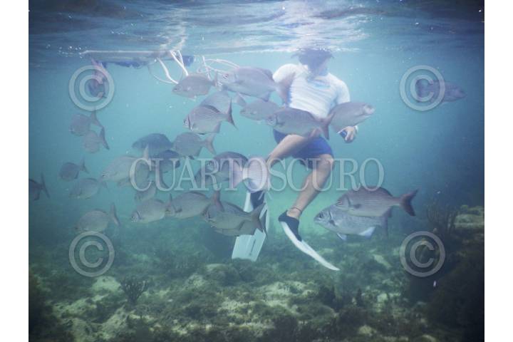 CANCÚN, QUINTANA ROO, 10OCTUBRE2015.- En esta zona se albergan más de 230 especies de algas y pastos marinos; entre las especies marinas más destacadas se encuentran los manatíes y las tortugas. La zona está repleta de selva, manglares y especies propias de la vegetación costera, además tiene fama por poseer una escultura del Museo Subacuático de Arte (MUSA). El MUSA es un buen punto de partida para iniciar la exploración del arrecife mesoamericano, allí podrás encontrar y admirar más de esta gran diversidad de especies marinas. Punta Nizuc, como parte de Cancún, posee la segunda barrera de coral más grande del mundo y ha permitido establecer allí diferentes parques preservadores del recurso natural. Las aguas son poco profundas, cálidas y cristalinas; además en ellas abundan una gran variedad de especies marinas los cuales hacen de este lugar un sitio espectacular. El Arrecife Mesoamericano tiene para ofrecer gran variedad de especies marinas y un avistamiento que jamás vas a olvidar; es por ello que año tras año más gente se acerca a estos parques acuáticos, ya que este hermoso arrecife en la zona de Cancún posibilita la realización de muchas actividades acuáticas y también de visitar los parques nacionales. Cada año se registran en el Área Natural Protegida (ANP) Parque Marino Nacional Costa Occidental de Isla Mujeres, Punta Cancún, Punta Nizuc, alrededor de 600 mil visitantes, cifra que coloca esta área en primer lugar al recibir el mayor número de turistas. La zona cuenta con más de 8 mil hectáreas y el nombre tan largo que posee se debe a que los arrecifes de coral no se localizan por todas partes y la mayoría de las unidades arrecifales se encuentran dentro de los tres polígonos que están incluidos. Al ser una de las áreas protegidas más consolidadas en su proyecto de conservación los colaboradores de la Comisión Nacional de Áreas Naturales Protegidas (Conanp) se encargan de la operación y mantenimiento. FOTO: ELIZABETH RUIZ /CUARTOSCURO.COM