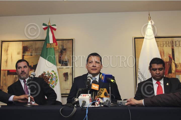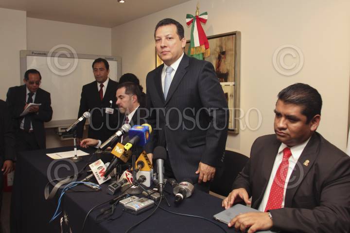 MÉXICO, D.F., 26DICIEMBRE2011.- Luis Gónzalez Placencia, presidente de la Comisión Nacional de Derechos Humanos, acompañado de los visitadores, Luis García López y Marat Paredes, donde informaron de la comparecencia que sostuvo el gobernador de Guerrero, Ángel Aguirre. FOTO: SAÚL LÓPEZ/CUARTOSCURO.COM