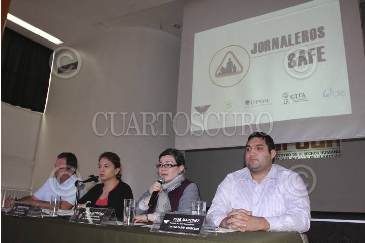 MÉXICO, D.F., 13NOVIEMBRE2012.- Dario Martinez, Griselda Vega, Leticia Gutiérrez y José Martínez, presentaron en conferencia de prensa el informe del Proyecto Jornaleros Safe, donde cinco organizaciones de México y Estados Unidos, investigaran las condiciones laborales y contrataciones de trabajadores agrícolas temporales con visa H2A. FOTO: SAÚL LÓPEZ /CUARTOSCURO.COM