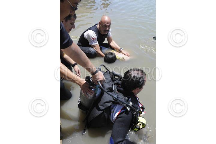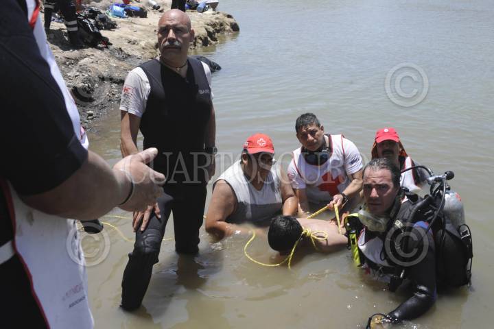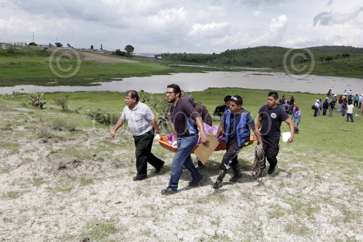 TEPOTZOTLAN, ESTADO DE MÉXICO, 28MAYO2012.- Felipe Ángel González Ortega de 17 años y Fernando Cruz García de 19 años, perdieron la vida el día de ayer, tras volcar la camioneta en la que viajaban propiedad de la CFE en la presa La Concepción. Elementos de rescate acuático de Cruz Roja lograron el rescate de los cuerpos. FOTO: LUIS CARBAYO /CUARTOSCURO.COM