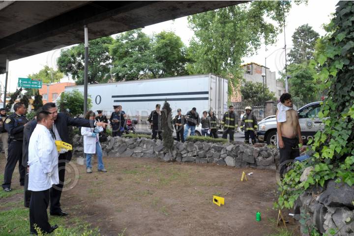 MÉXICO, D.F., 19JULIO2010.- Un sujeto de 35 años aproximadamente, fue encontrado sin vida, colgado del puente del Metro que corre sobre Congreso de la Unión a la altura de la calle San Antonio Tomatlan en la colonia Penitenciaria, perímetro de la Delegación Venustiano Carranza. Al lugar arribaron elementos de la Procuraduría del Distrito para tomar conocimiento y elementos de Bomberos para bajar el cadáver. FOTO: LUIS CARBAYO/CUARTOSCURO.COM