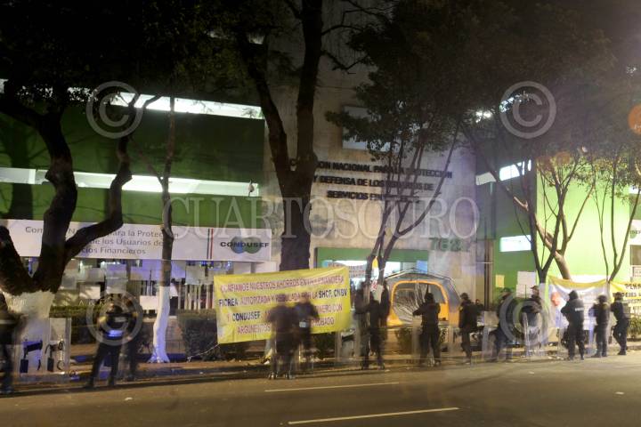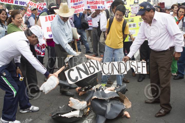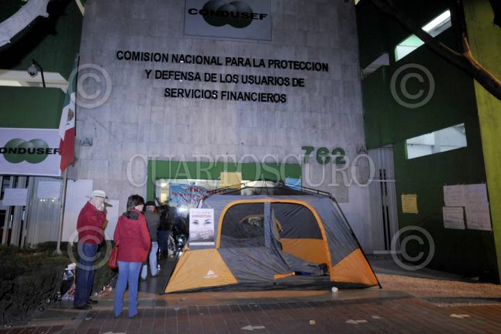 MÉXICO D.F., 20DICIEMBRE2014.- Ahorradores de la CONDUSEF se manifestaron en las afueras de las oficinas ubicadas en Avenida de los Insurgentes a la altura de la colonia Del Valle, por presuntos fraudes en sus cuentas. FOTO: LUIS CARBAYO /CUARTOSCURO.COM