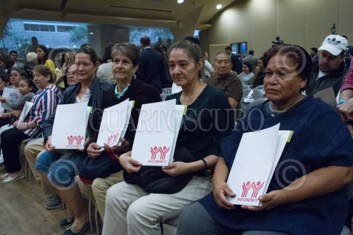 CIUDAD DE MÉXICO, 30MAYO2019.- Beneficiarios de la firma del convenio de colaboración entre la Secretaría del Trabajo y Previsión Social (STPS), a través de la Procuraduría Federal de la Defensa del Trabajo (Profedet), y el Instituto del Fondo Nacional de la Vivienda para los Trabajadores (Infonavit), con este convenio los trabajadores recibirán de manera más rápida y segura la devolución de sus ahorros. FOTO: ROGELIO MORALES /CUARTOSCURO.COM