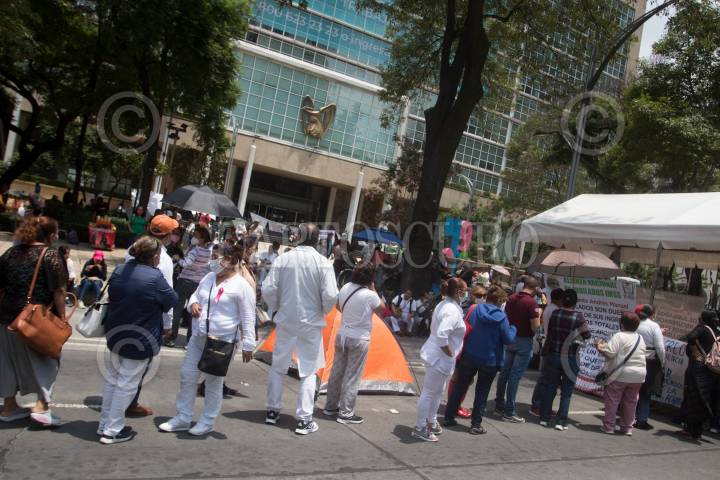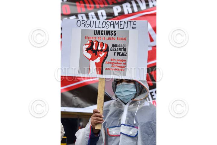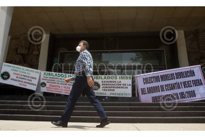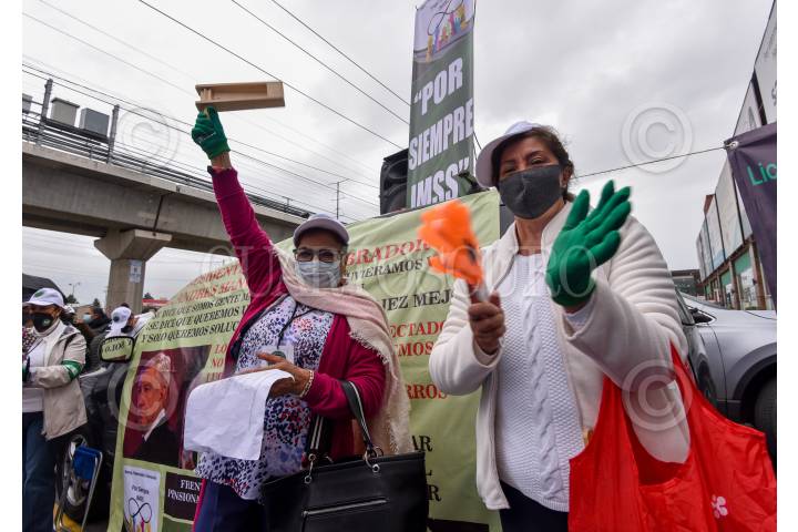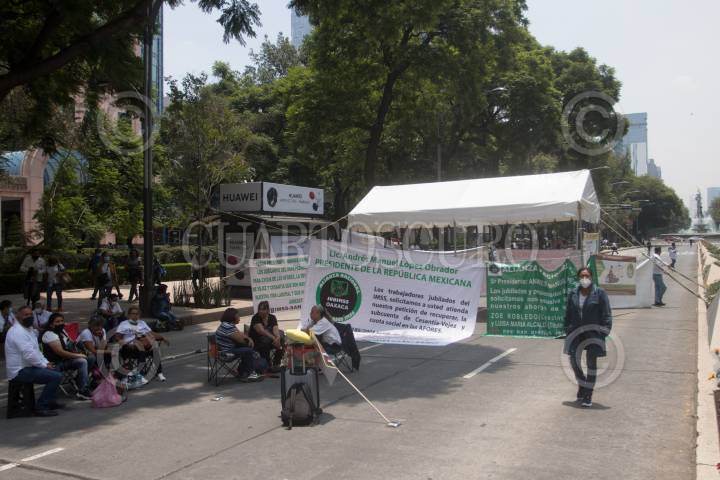 Jubilados del IMSS mantienen un bloque sobre avenida Reforma para exigir que se les regrese el dinero de sus ahorros de más de 27 años, el cual esta depositado en su afore pero no está reflejado
