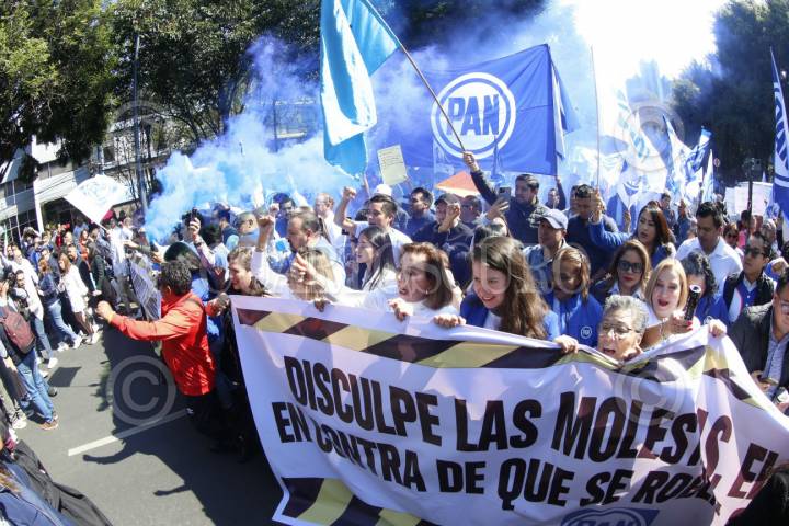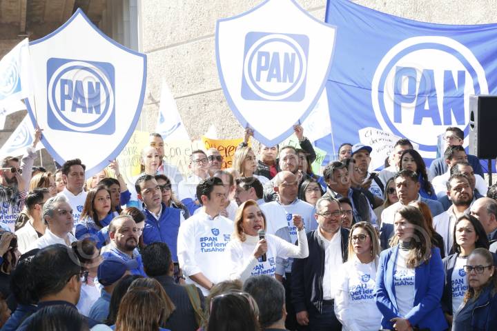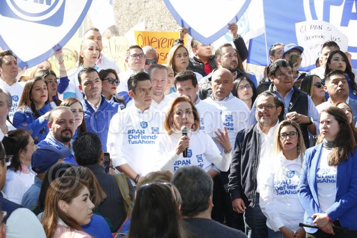 CIUDAD DE MÉXICO, 27ENERO2025.- La senadora Guadalupe Murguía encabezó una protesta con panistas en las inmediaciones del Infonavit para rechazar una posible ley en donde se puedan disponer de recursos de ahorradores, ellos señalan que una medida así pone en riesgo los ahorros de los trabajadores que llevan años cotizando en el instituo de vivienda. FOTO: CUARTOSCURO.COM