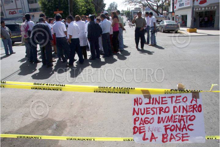 OAXACA, OAXACA 08AGOSTO2008.- 80 Trabajadores del Hospital Civil de la sub. sección 07, que pertenece a la Secretaria de Salud se manifestaron esta medio día cerrando los accesos de la avenida Porfirio Díaz por el incumplimiento al pago anual que reciben del fondo de ahorros. FOTO: MAX NÚÑEZ/CUARTOSCURO.COM