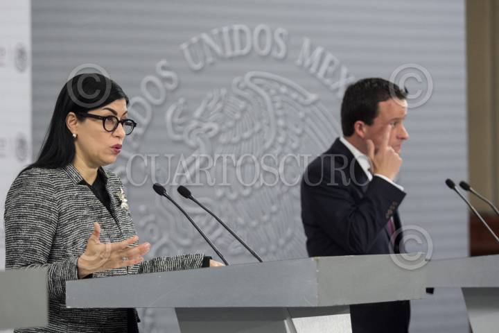 CIUDAD DE MÉXICO, 26ENERO2017.- Vanessa Rubio, subsecretaria de Hacienda, y Mikel Arriola, director general del Instituto Mexicano del Seguro Social (IMSS), durante la conferencia de prensa para dar a conocer los detalles de apoyos para el fortalecimiento familiar del AFORE, los nuevos procedimientos, así como los trámites a realizar para el retiro de los ahorros. FOTO: GALO CAÑAS /CUARTOSCURO.COM