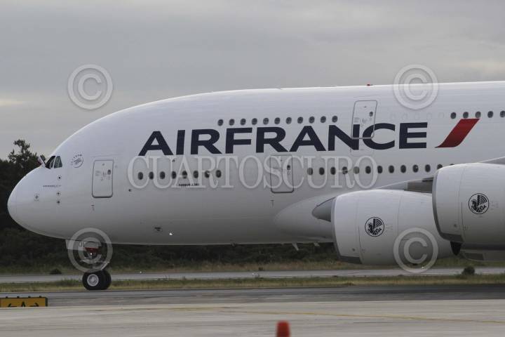MÉXICO, D.F. 23ENERO2013.-Avión de la empresa AIR FRANCE en el que partió la recién liberada Florence Cassez, luego de ocultarse de los medios de comunicación y escoltada por patrullas de la Policia Federal en la pista del Aereopuerto. FOTO: JUAN PABLO ZAMORA /CUARTOSCURO.COM