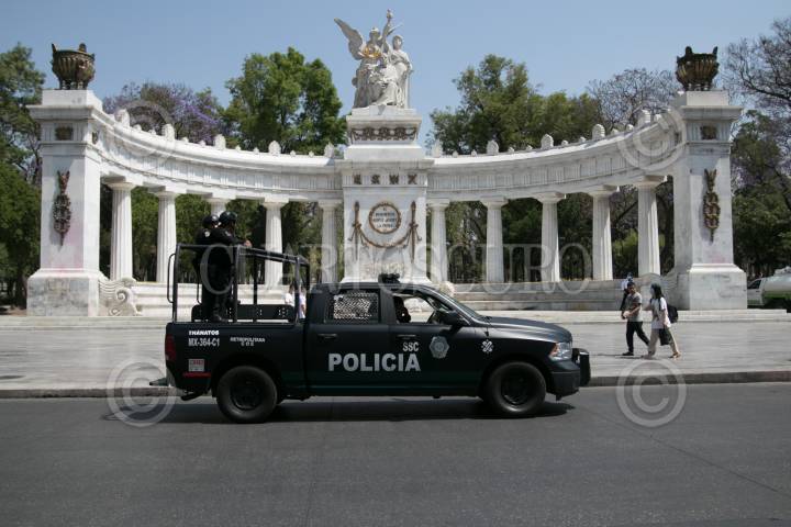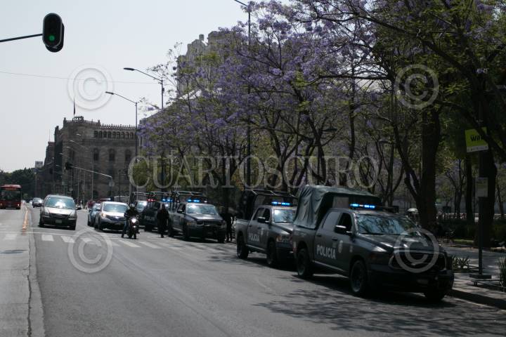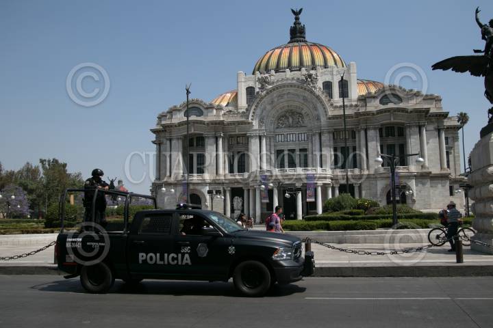 Patrullas recorren el perimetro de Bellas Artes para llamar a la ciudadanía a permanecer en sus hogares durante la Emergencia Sanitaria.