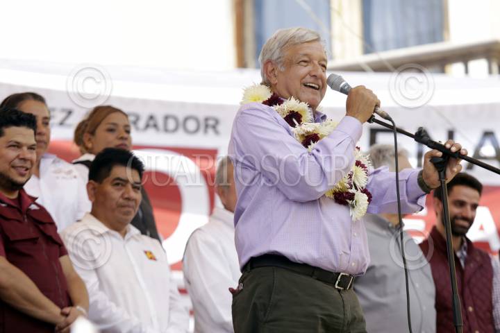 AJALPAN, PUEBLA,11MAYO2018.- El candidato a la presidencia de la república por MORENA, Andrés Manuel López Obrador, visitó el municipio de Ajalpan para realizar mitin con simpatizantes acompañado por el candidato a gobernador Miguel Barbosa. FOTO: HILDA RÍOS/CUARTOSCURO.COM