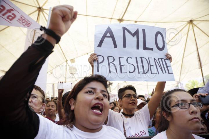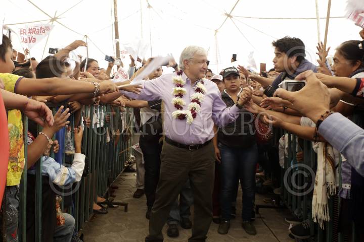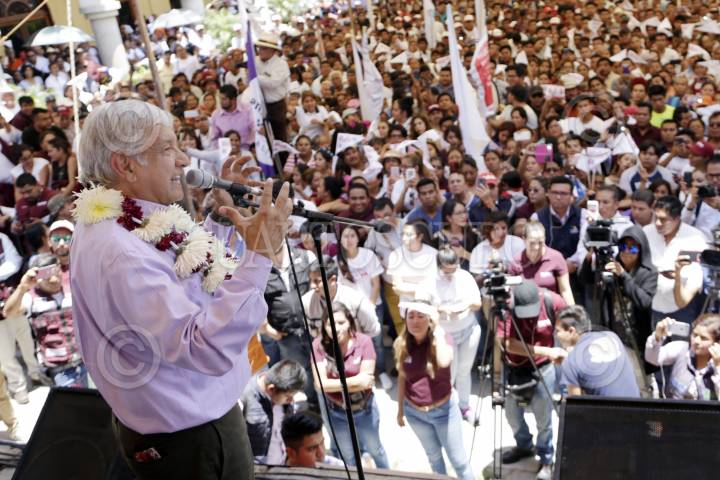 AJALPAN, PUEBLA, 11MAYO2018.- Andrés Manuel López Obrador, candidato de Morena a la presidencia de la república, sostuvo un encuentro con miles de simpatizantes a su movimiento en la plaza principal de la cabecera municipal en donde dio a conocer sus propuesta de gobierno. FOTO: MISAEL VALTIERRA / CUARTOSCURO.COM