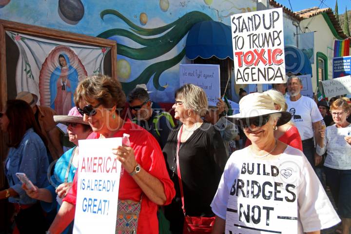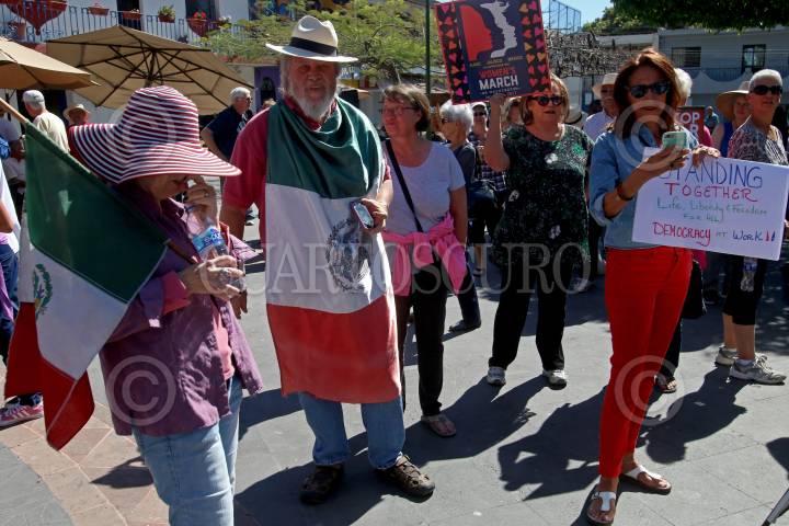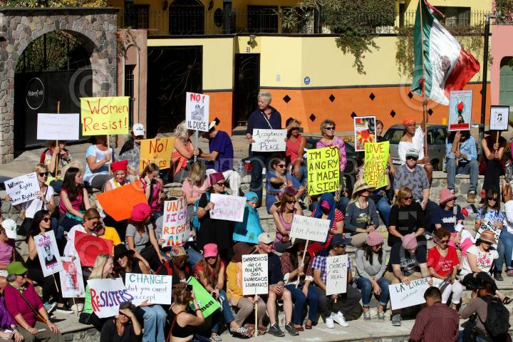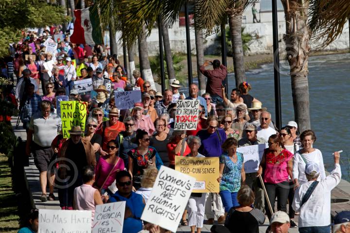 AJIJIC, JALISCO. 21ENERO2017.- Cientos de personas entre Norteamericanos, Canadienses y Mexicanos protestaron en contra de las políticas que quiere imponer el nuevo presidente de los Estados Unidos, Donald Trump y realizaron una marcha de nombre “Womens March” que se llevo a cabo en el poblado de Ajijic, lugar donde habitan la comunidad de Norteamericanos y Canadienses fuera de sus países. Dicha marcha se llevo a cabo simultáneamente en diversas partes del mundo. FOTO : FERNANDO CARRANZA GARCIA / CUARTOSCURO.COM