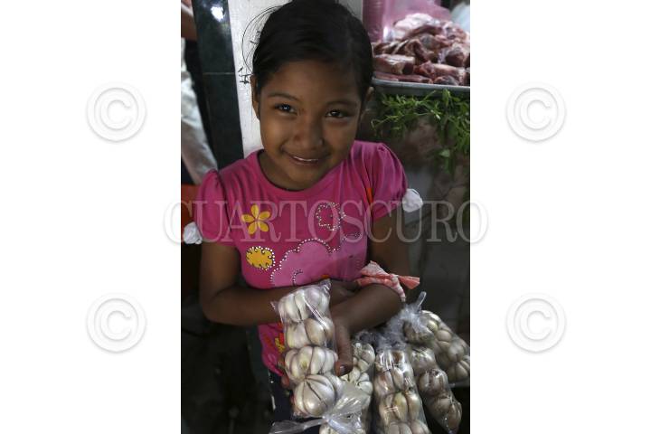 CUERNAVACA, MORELOS, 11JUNIO2013.- Mañana se celebra el día mundial contra el trabajo infantil, paradójicamente muchos menores no lo sabe y los festejaran realizando sus actividades cotidianas. Verónica y su hermana apoyan a su madre vendiendo racimos de ajos. La niñas estudian pero en ocasionas como hoy tiene que abandonar el aula para aportar algo a la economía de la casa. FOTO: ALMA LAFAYET /CUARTOSCURO.COM