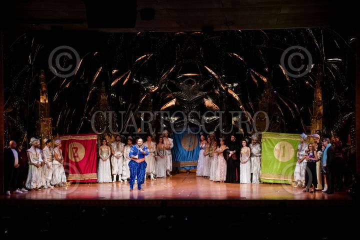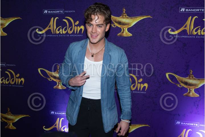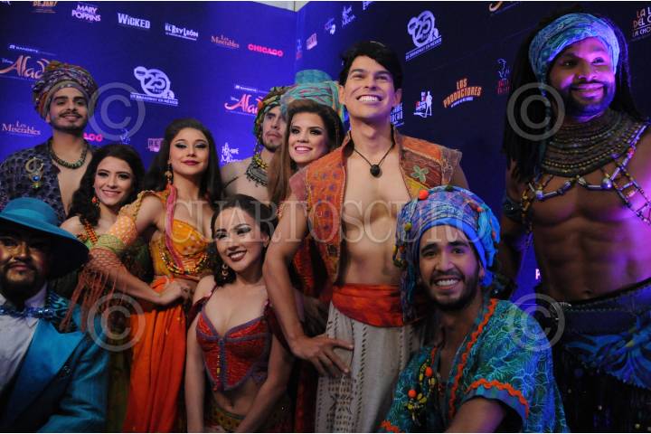 Elenco de la obra Aladdin durante su pasó por la alfombra roja.