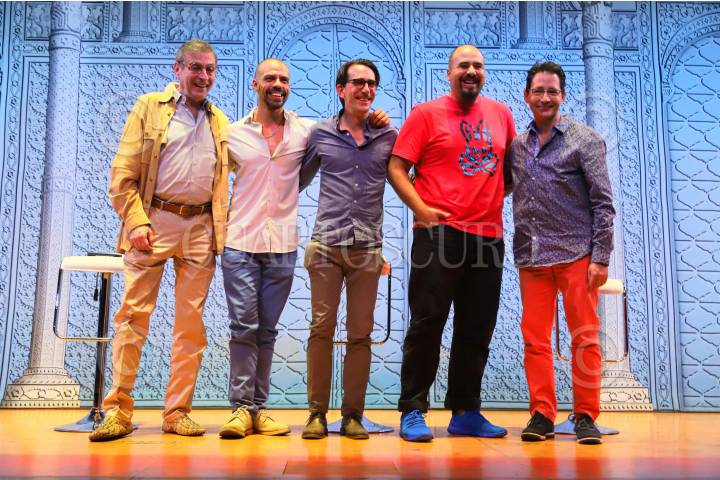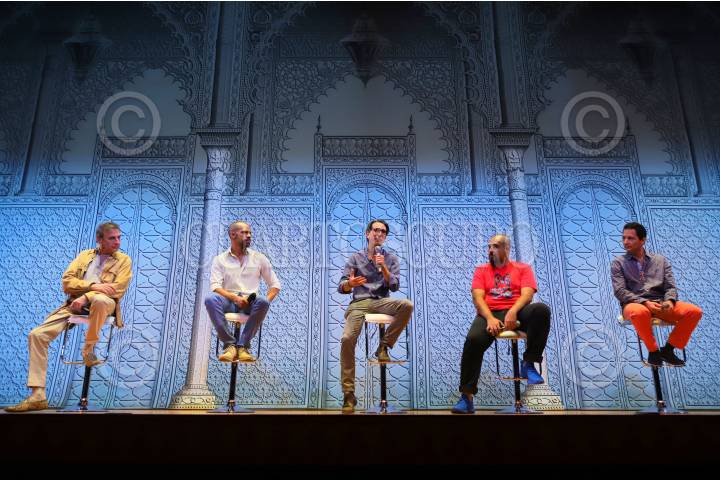 El productor Morris Gilbert; el actor, Mauricio de Montellano; Gerardo Gaya presidente de la fundación Iluminemos; el actor Juan Pablo Martínez y Jaime Matarredona, supervisor de producción durante la conferencia de prensa con la producción del musical Aladdín que presentarán una función especial para personas neurodiversas en conjunto con la fundación Iluminemos, el próximo 28 de Agosto en el Teatro Telcel.