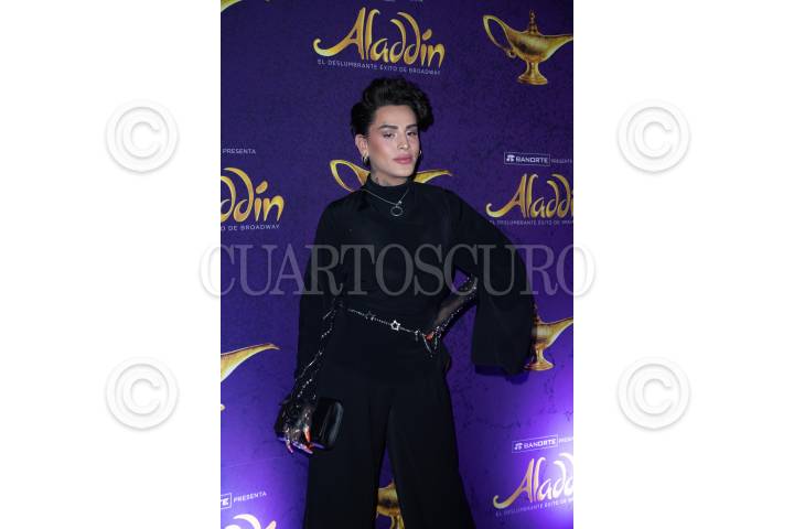 Jade Fraser durante la alfombra roja por las 450 representaciones del musical Aladdín, que se presenta en el Teatro Telcel.