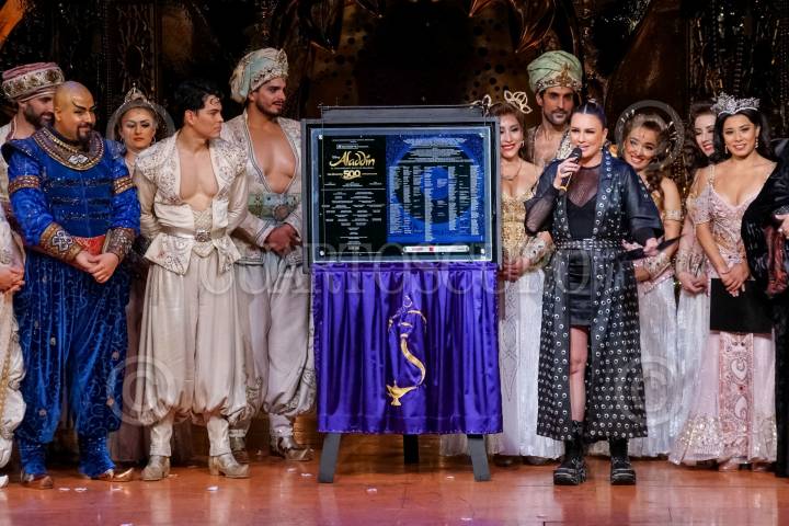 Aladdín, el Deslumbrante Éxito de Broadway celebró sus 500 representaciones en una emotiva noche. María José fue la invitada de lujo para develar la placa conmemorativa.