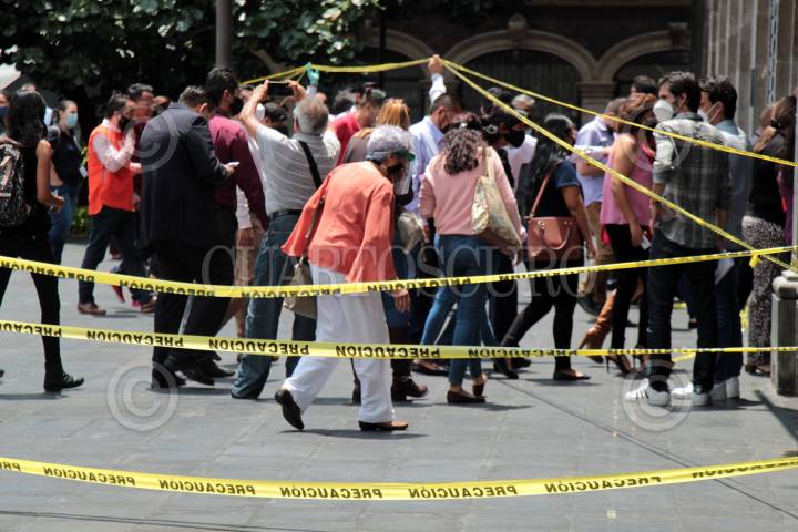 CIUDAD DE MÉXICO, 29ABRIL2025.- Decenas de trabajadores y diputados del recinto legislativo de San Lázaro fueron desalojados de sus puestos de trabajo por elementos de protección civil como parte del primer Simulacro Nacional del año. FOTO: MARIO JASSO/CUARTOSCURO.COM