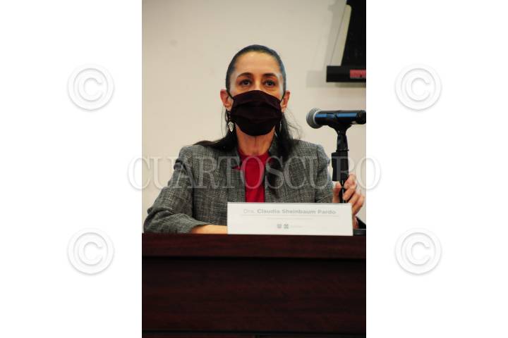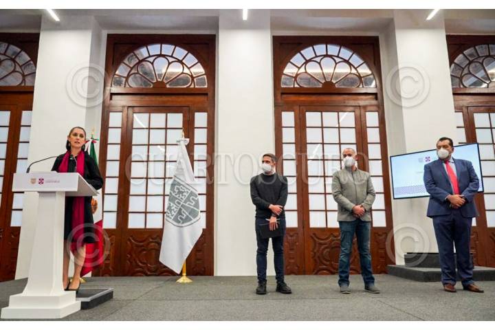Claudia Sheinbaum, jefa de gobierno, en compañía de su gabinete, ofrecen una conferencia.