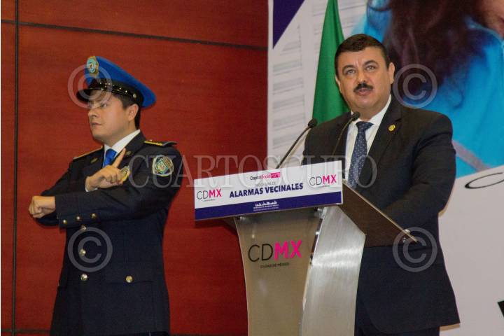 CIUDAD DE MÉXICO, 29NOVIEMBRE2016.- Hiram Almeida, secretario de Seguridad Pública de la Ciudad de México, durante la entrega de alarmas vecinales a habitantes de la colonia Del Parque, en la delegación Venustiano Carranza. La medida busca disminuir el índice delictivo en la ciudad, así como mantener a la población civil más cercana a las autoridades. FOTO: GALO CAÑAS /CUARTOSCURO.COM