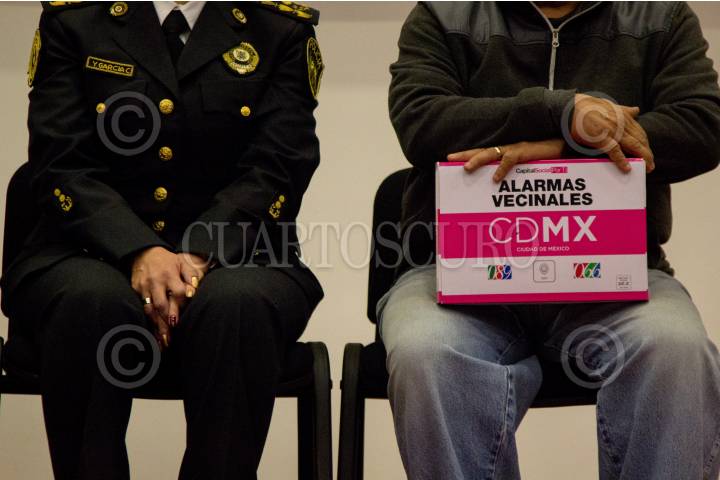 CIUDAD DE MÉXICO, 29NOVIEMBRE2016.- Aspectos de los oficiales de la seguridad pública asistentes a la entrega de alarmas vecinales a habitantes de la colonia Del Parque, en la delegación Venustiano Carranza. La medida busca disminuir el índice delictivo en la ciudad, así como mantener a la población civil más cercana a las autoridades. FOTO: GALO CAÑAS /CUARTOSCURO.COM