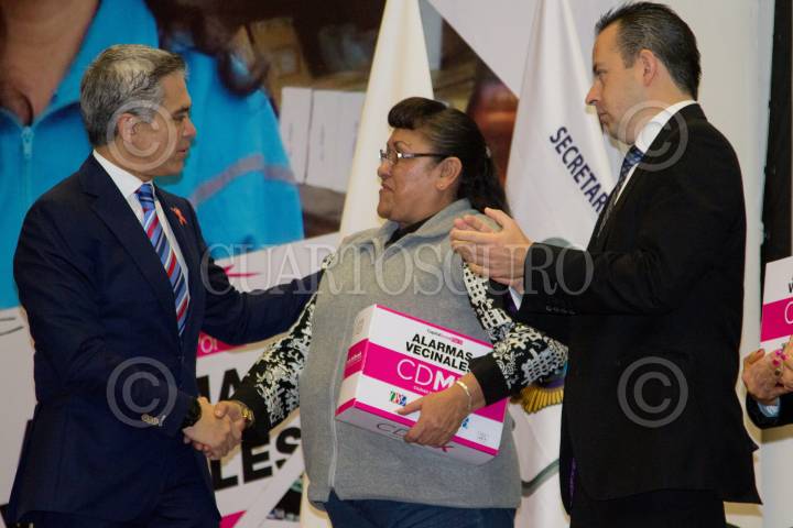 CIUDAD DE MÉXICO, 29NOVIEMBRE2016.- Miguel Ángel Mancera, jefe de gobierno de la Ciudad de México, encabezó la entrega de alarmas vecinales a habitantes de la colonia Del Parque, en la delegación Venustiano Carranza. La medida busca disminuir el índice delictivo en la ciudad, así como mantener a la población civil más cercana a las autoridades. FOTO: GALO CAÑAS /CUARTOSCURO.COM