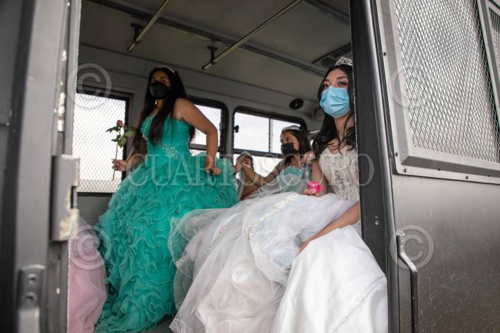 Hijas de reclusas del penal de Reinserción Social de Santa Martha Acatitla, festejan sus XVs años en compañía de sus familiares. Iniciando con unas sesión de fotos en la sede del Gobierno de la Ciudad, 17 quinceañeras y un quinceañero, partieron al penal donde se realizó una misa y los respectivos festejos.