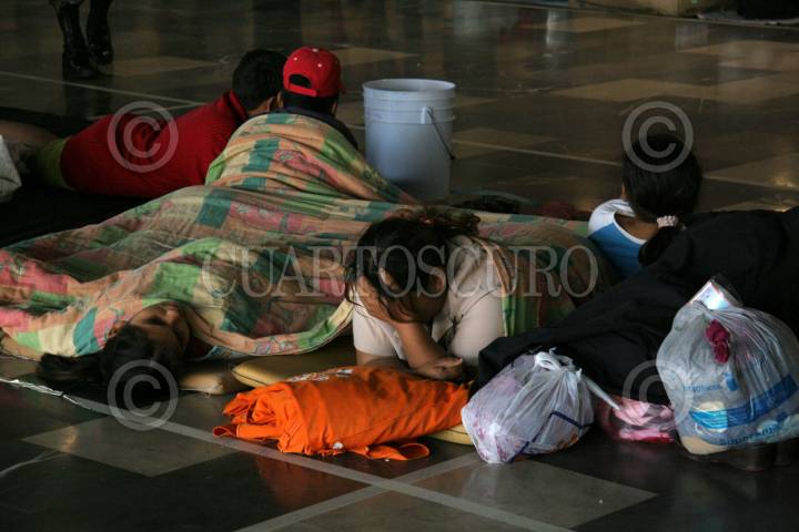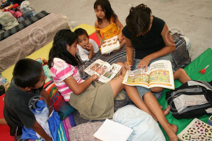 VILLAHERMOSA, TABASCO, 26FEBRERO2008.- Tras cinco meses de las contingencias por inundación más de mil tabasqueños que resultaron damnificados permanecen albergados en el parque deportivo "Recreativo de Atasta". En este lugar las medidas de seguridan son extremas para lo que viven ahí, pues tan solo pueden salir a las cinco de la mañana y regresar alrededor de las 21 horas; previamente haber dicho lugar a donde se dirigen y personas que visitan. FOTO: MARCO POLO GUZMÁN HERNÁNDEZ/CUARTOSCURO.COM