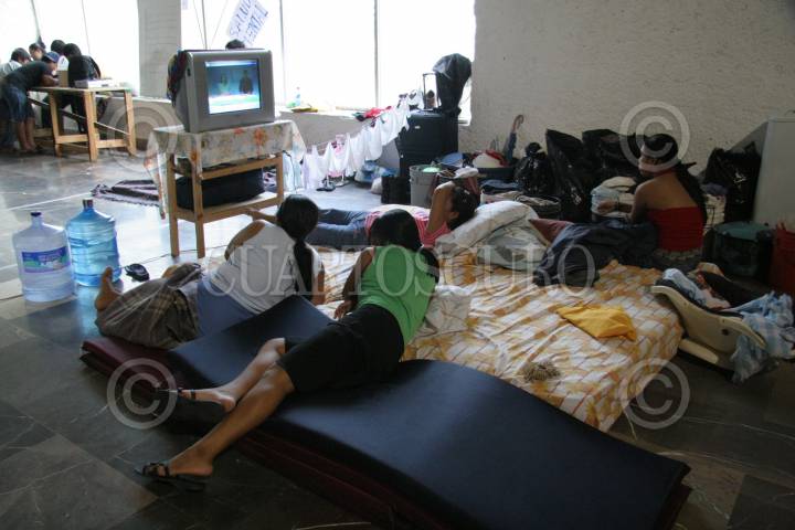 VILLAHERMOSA, TABASCO, 01OCTUBRE2008.- Cientos de albergados se encuentran en el Centro de Convenciones Tabasco Dos Mil, ya que son damnificados por las constantes lluvias y el desborde de ríos. FOTO: ESPECIAL/CUARTOSCURO.COM