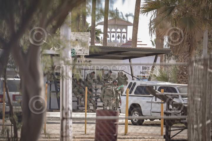 TIJUANA, BAJA CALIFORNIA, 27 de enero de 2025.- Militares del ejercito mexicano encargados de realizar la comida para los migrantes. A unos días de que se habilitara el albergue federal, alrededor de 36 hombres fueron llevados al lugar tras ser deportados la mañana de este lunes 27 de enero. En taxis de la ruta “centro”, blancos con dorado, los repatriados llegaron al salón Flamingos para ser atendidos. Algunos señalaron que ya habían sido deportados varias veces, pero que, debido a que tienen familia allá, siguen intentando cruzar “al otro lado”. Tal es el caso de un migrante originario de Guanajuato, quien comentó que esta es su cuarta deportación. Elementos de la Guardia Nacional y personal del Instituto Nacional de Migración fueron los encargados de recibir a los repatriados. FOTO: LUIS BAUTISTA/CUARTOSCURO.COM