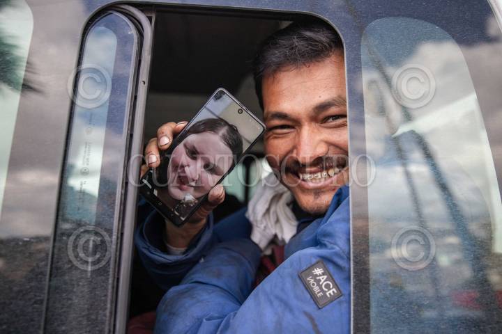 TIJUANA, BAJA CALIFORNIA, 27 de enero de 2025.- Migrante repatriado mostrando su celular con la imagen de su esposa con la que realizaba una video llamada. A unos días de que se habilitara el albergue federal, alrededor de 36 hombres fueron llevados al lugar tras ser deportados la mañana de este lunes 27 de enero. En taxis de la ruta “centro”, blancos con dorado, los repatriados llegaron al salón Flamingos para ser atendidos. Algunos señalaron que ya habían sido deportados varias veces, pero que, debido a que tienen familia allá, siguen intentando cruzar “al otro lado”. Tal es el caso de un migrante originario de Guanajuato, quien comentó que esta es su cuarta deportación. Elementos de la Guardia Nacional y personal del Instituto Nacional de Migración fueron los encargados de recibir a los repatriados. FOTO: LUIS BAUTISTA/CUARTOSCURO.COM
