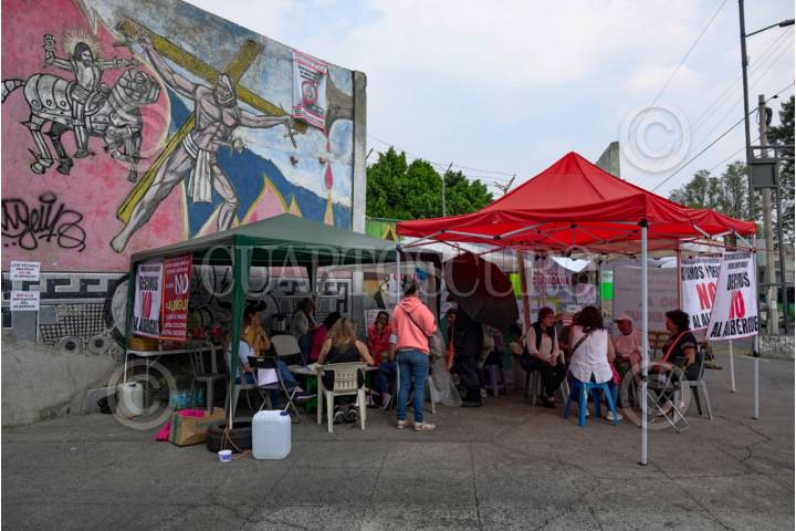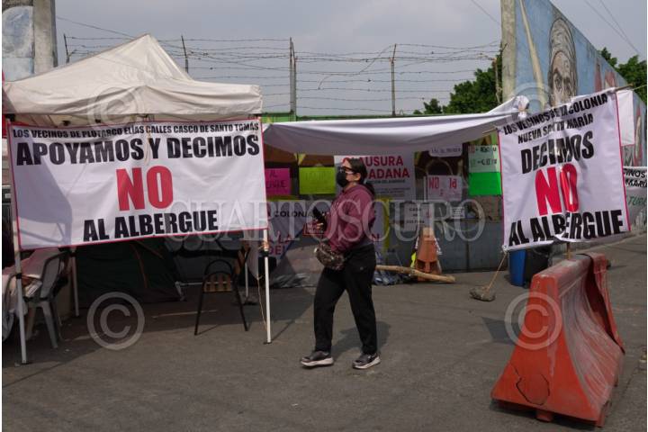 CIUDAD DE MÉXICO 25MARZO2025.- Un grupo de vecinos de la colonia Nueva Santa María en la alcaldía Azcapotzalco, mantienen un campamento desde hace 5 días a las afueras de un predio en donde autoridades de gobierno alistaban la construcción de un albergue migrante. Los vecinos se oponen a dicha obra argumentando la falta de infraestructura, la inseguridad en la zona y la convivencia del día a día que se tendría con los migrantes. FOTO: ROGELIO MORALES CUARTOSCURO.COM