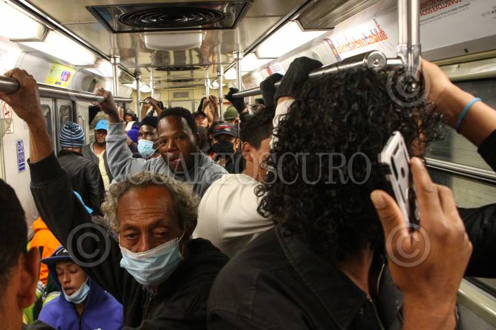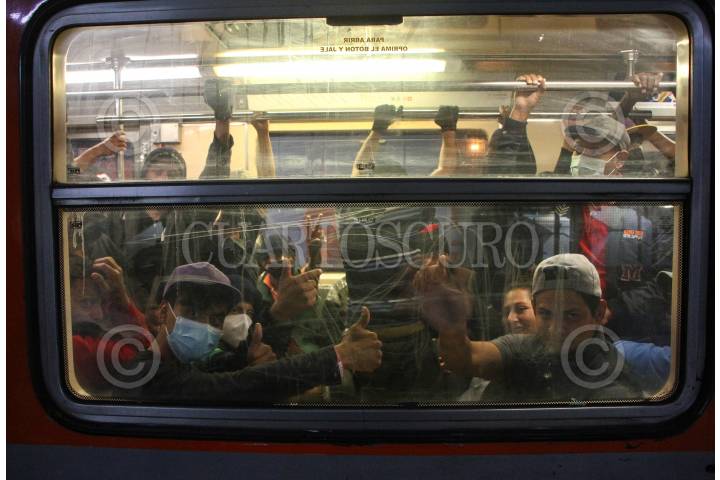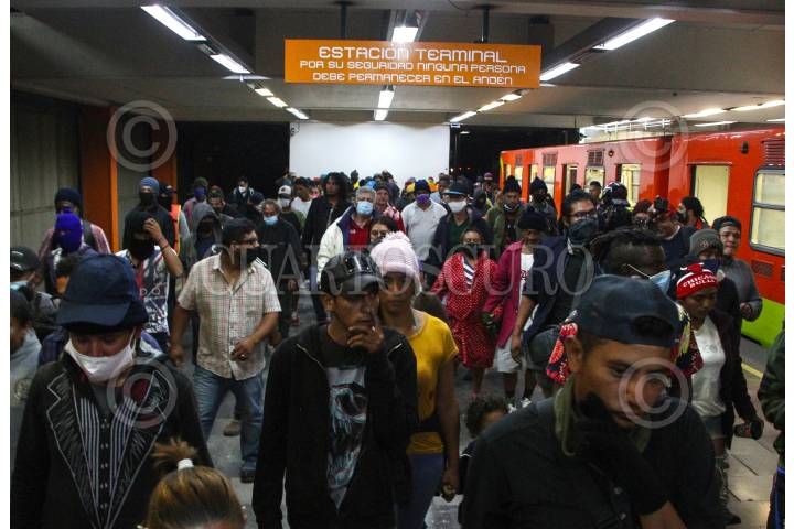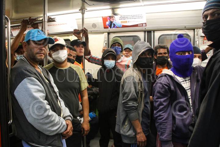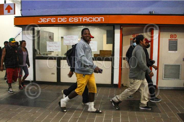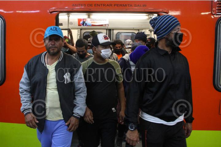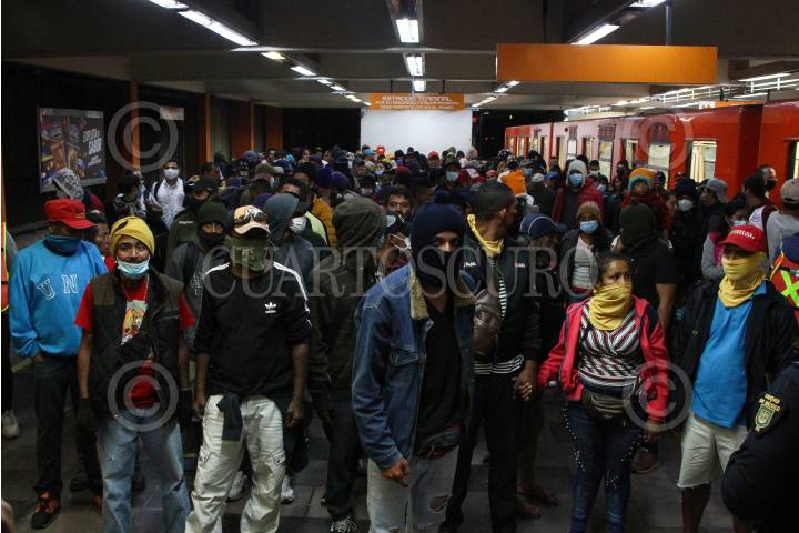 Tras protestar frente al INM, migrantes regresaron a la Casa del Peregrino utilizando el metro capitalino.