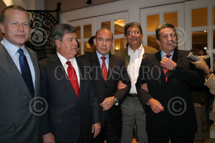 MEXICO, D.F. 13OCTUBRE2005.- Manuel Angel, exgobernador de Hidalgo, Albores Guillen, exgobernador de Chiapas, Juan S. Millan, exgobernador de Sinaloa y Alfredo del Mazo, exgobernador del Estado de México a su salida de la reunión que sostuvieron en un hotel de la ciudad de México. FOTO: Nelly Salas/CUARTOSCURO.COM