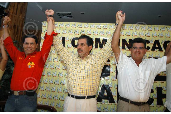 CANCUN, QUINTANA ROO. 12ENERO2008.- Jesús Ortega Martínez se reunió con Greg Sánchez, candidato a la alcaldia de Cancún y el senador José Luis Máximo García Zalvidea. FOTO: CUARTOSCURO.COM