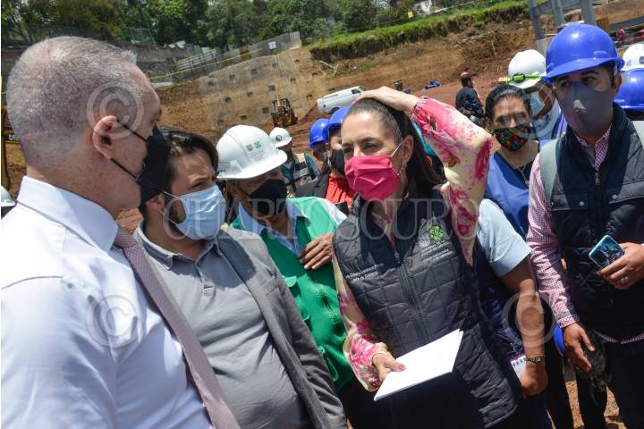 Adrián Rubalcava Suárez, alcalde de Cuajimalpa, y Claudia Sheinbaum Pardo, jefa de Gobierno, durante la visita de supervisión de obra del Hospital General Cuajimalpa.