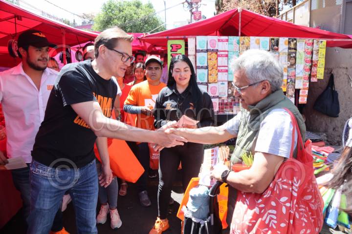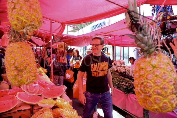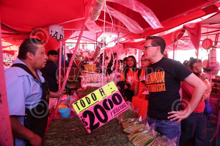 CIUDAD DE MÉXICO, 03ABRIL2024. Salomón Chertorivski, candidato a la jefatura de Gobierno de la Ciudad de México por Movimiento Ciudadano recorrió un tianguis en la alcaldía Cuajimalpa como parte de su campaña. FOTO: EDGAR NEGRETE LIRA/CUARTOSCURO.COM