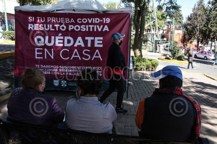 Vecinos de la alcaldía Magdalena Contreras, esperan su turno para l realización de proba rápida.
