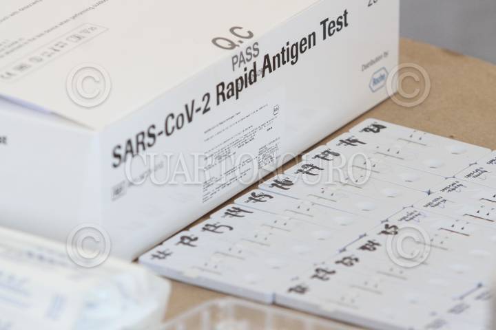 Realización de toma de muestra nasal para prueba rápida COVID-19 .