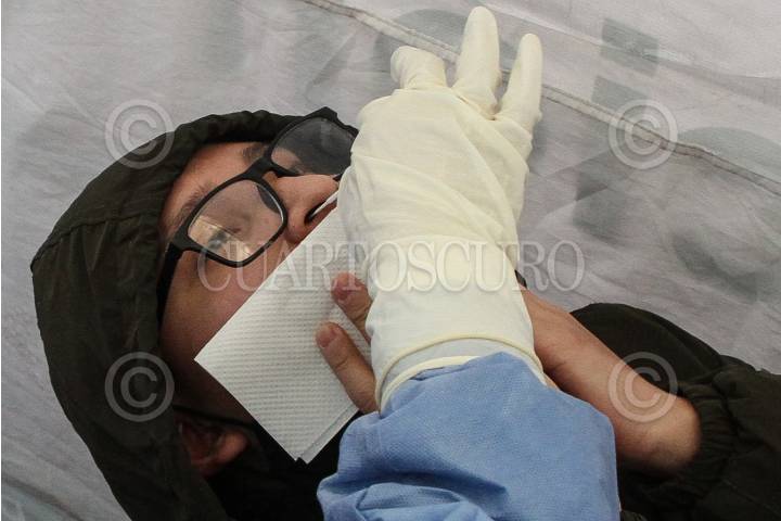 Hombre durante toma de muestra para detección COVID-19.