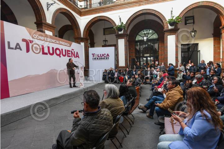 TOLUCA, ESTADO DE MÉXICO, 04FEBRERO2025.- Ricardo Moreno Bastida, presidente municipal de Toluca en su conferencia de prensa semanal “La Toluqueña” aplaudió a la presidenta Claudia Sheinbaum por su respuesta al presidente estadounidense Donald Trump, también informó sobre la diversas acciones que se han realizado en la capital mexiquense. FOTO: CRISANTA ESPINOSA AGUILAR /CUARTOSCURO.COM