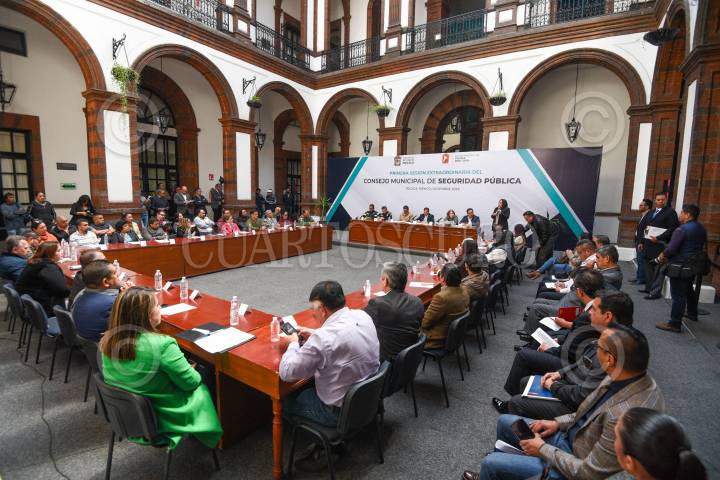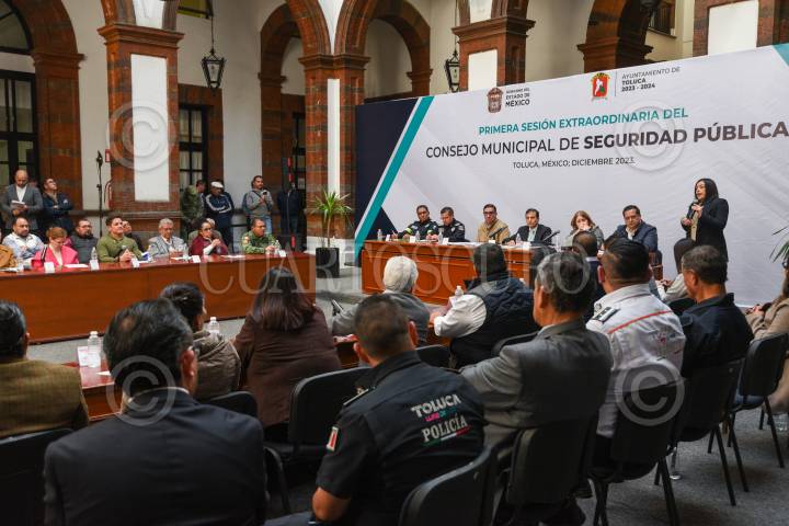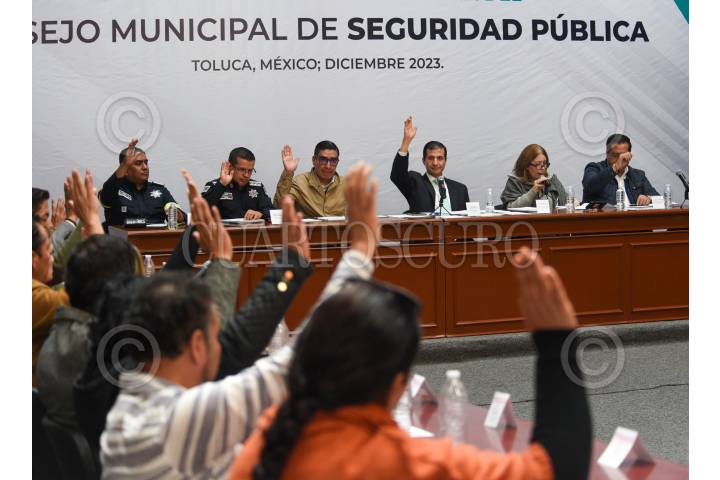 TOLUCA, ESTADO DE MÉXICO, 21DICIEMBRE2023.- Juan Maccise Naime Presidente Municipal de Toluca encabezó la Primera Sesión Extraordinaria del Consejo Municipal de Seguridad Pública en Palacio Municipal, después de anunciar una serie de acciones en favor de la ciudadanía, después de asumir el cargo como alcalde al encontrarse prófugo el ex alcalde Raymundo “N” sobre quien recae una orden de aprehensión por su presunta participación en secuestro exprés y extorsión. FOTO: CRISANTA ESPINOSA AGUILAR /CUARTOSCURO.COM