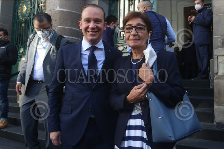 Santiago Taboada, alcalde electo de Benito Juárez, acompañado de su mamá saludaron a los medios durante su llegada al Congreso de la Ciudad