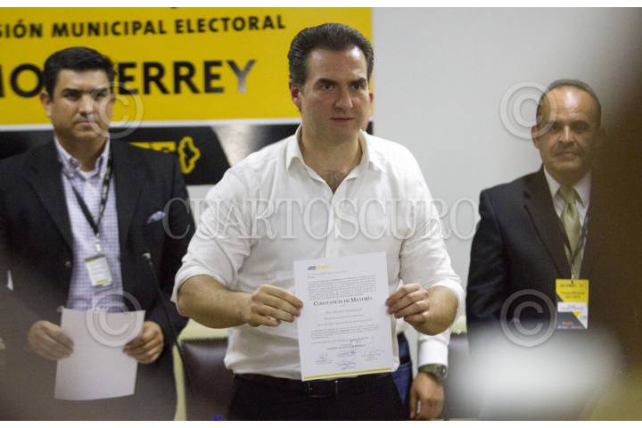 MONTERREY, NUEVO LEÓN, 21AGOSTO2018.- El Tribunal Electoral del Estado de Nuevo León, determinó inconsistencias en las elecciones para alcaldía de Monterrey donde el panista Felipe de Jesús Cantú resultó electo y habría recibido su constancia de acreditación. Después de semanas de demandas, el Tribunal falló a favor del priista y actual alcalde de Monterrey Adrián de la Garza, por lo cuál recibió su constancia que lo acredita como Edil electo por segunda ocasión. FOTO: GABRIELA PÉREZ MONTIEL /CUARTOSCURO.COM