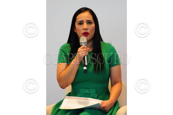 Sandra Cuevas, alcaldesa electa de Cuauhtémoc, durante su participación en la conferencia.